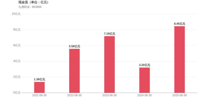 在经营稳健性方面,九洲药业面临库存管理效率提升的积极变化,存货周转天数为177.17天,较2024年上半年下降了7.12%,表明公司运营效率在持续改善。经营活动产生的现金流净额为8.45亿元,相比2024年同期的3.2亿元,同比增长164.06%,显示出公司现金回流能力显著增强。此外,2025年上半年的资产负债率为19.86%,同比下降3.99个百分点,这意味着公司财务结构更加稳健,负债压力有所缓解。